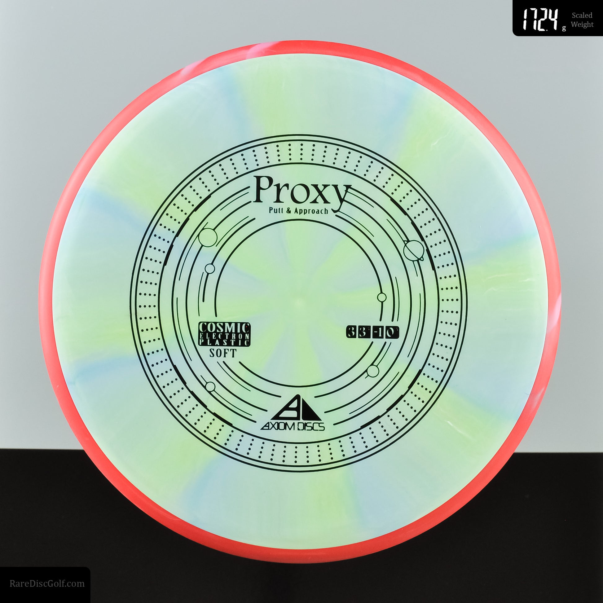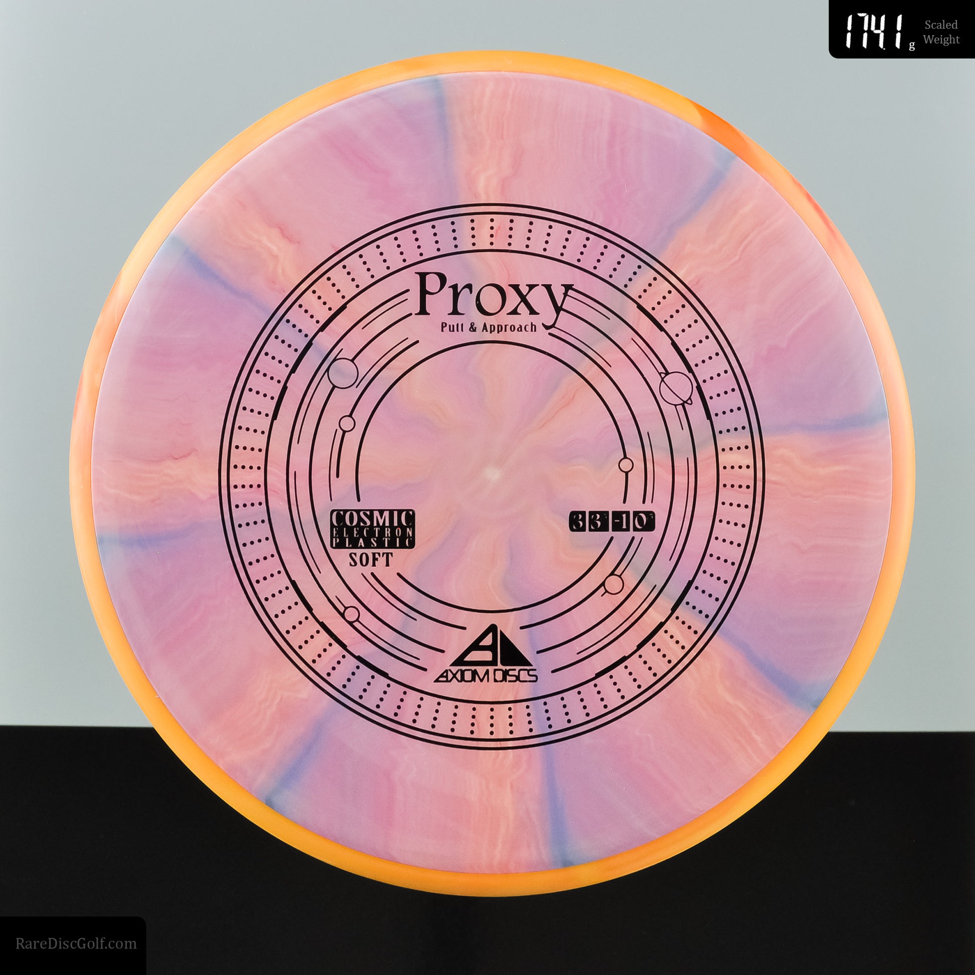 The Axiom Proxy shares the Envy mold's core, with the same low-profile feel and solid grip. The Proxy sets itself apart from the Envy with its remarkable straight forward-fading finish. This putter is the "putting putter" companion for those who love the feel of the Envy but prefer it for throwing.