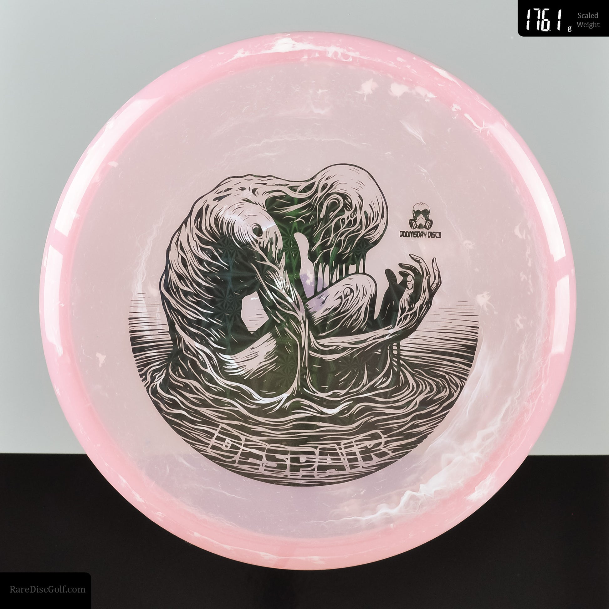 The Despair is an all purpose, straight flying midrange with a bit of turn and a bit of fade. This is the disc to reach for when accurate shot shape is a priority. Whether it's nailing that slight flip to flat flight in a tight woods line or getting a bit of a hyzer around a corner with little skip, the Despair will be a great choice. Don't Despair, just throw the Despair!Â