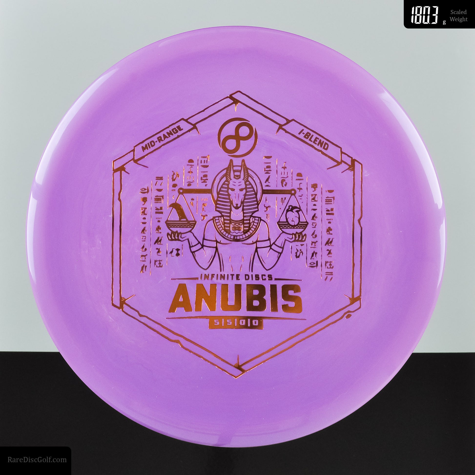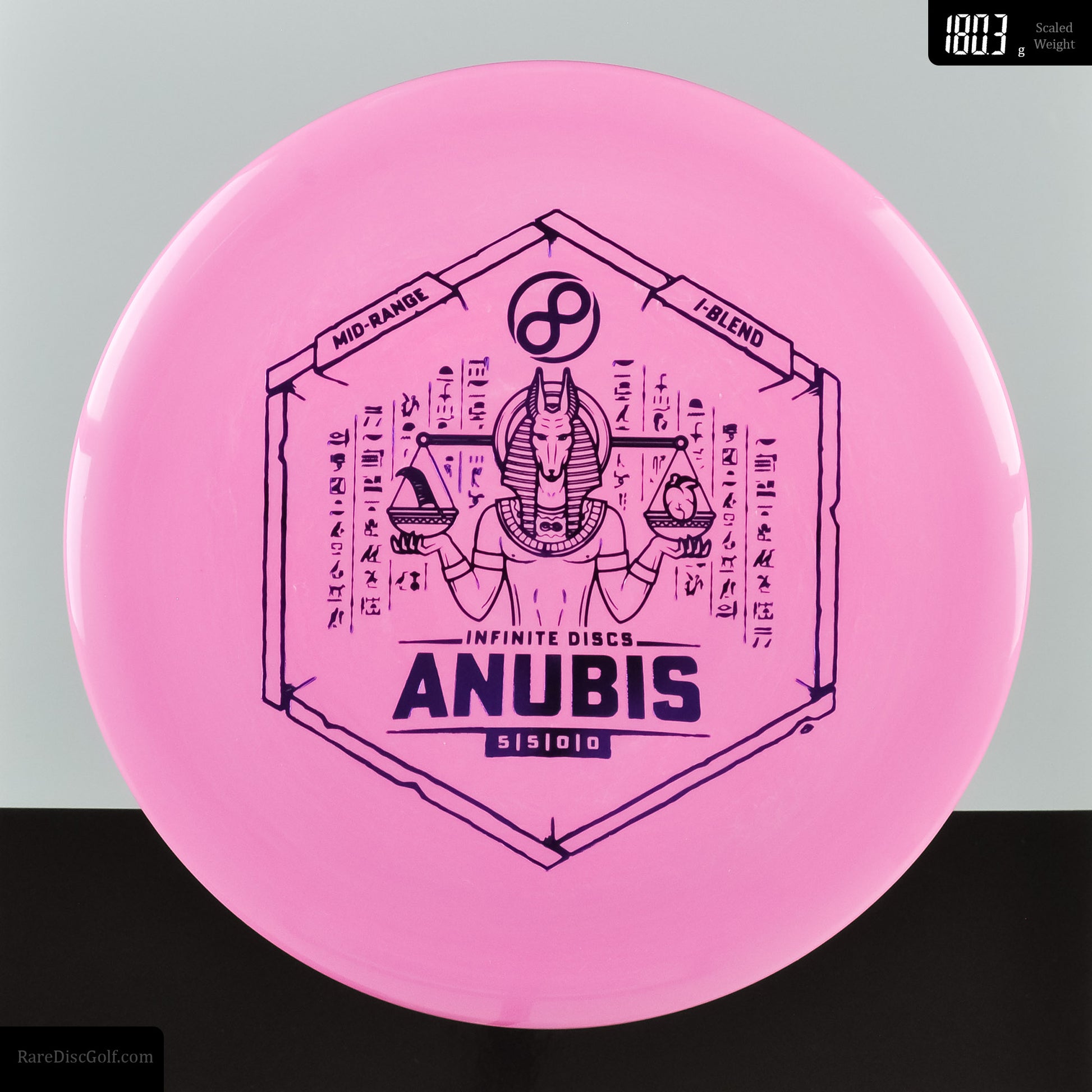 The Anubis is the quintessential straight flying midrange. With a touch of turn and barely any fade once beat in, this disc is one of the straightest in the bag. Yet, if you throw it on an anhyzer or hyzer line it should hold that flight path too. A similar mold to the famous Innova Mako3, Infinite's Anubis is that straight flight that will thread tight tree gaps and land exactly where expected. Plus, the high amount of glide ensures a long flight to reach far, straight distances that were once only possible in dreams.